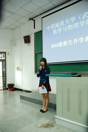 在同学们热烈的掌声中,大会主持人黄恬恬老师宣布开学典礼正式开始。全体起立奏唱国歌之后,数理学院院长刘安平教授致辞。他对新同学的到来表示热烈的欢迎;并从学院发展历史、师资概况、学科发展、学术交流、科技竞赛等方面为同学们做了详细的介绍,最后对同学们提出了殷切希望。