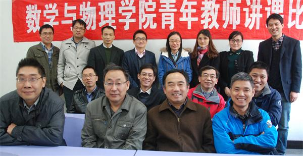 2015年11月9日下午两点,数理学院青年教师讲课比赛在教三楼305举行。与会的评委有:数理学院张光勇副院长、程永进副院长、黄刚副院长、罗文强主任、肖海军主任、罗中杰书记、李志明副主任、郭龙副主任及汤型正副教授。参加讲课比赛的青年教师有:边家文、杨迪威、陈洪云、王美娟、吴妍、胡鹏和黄娟。