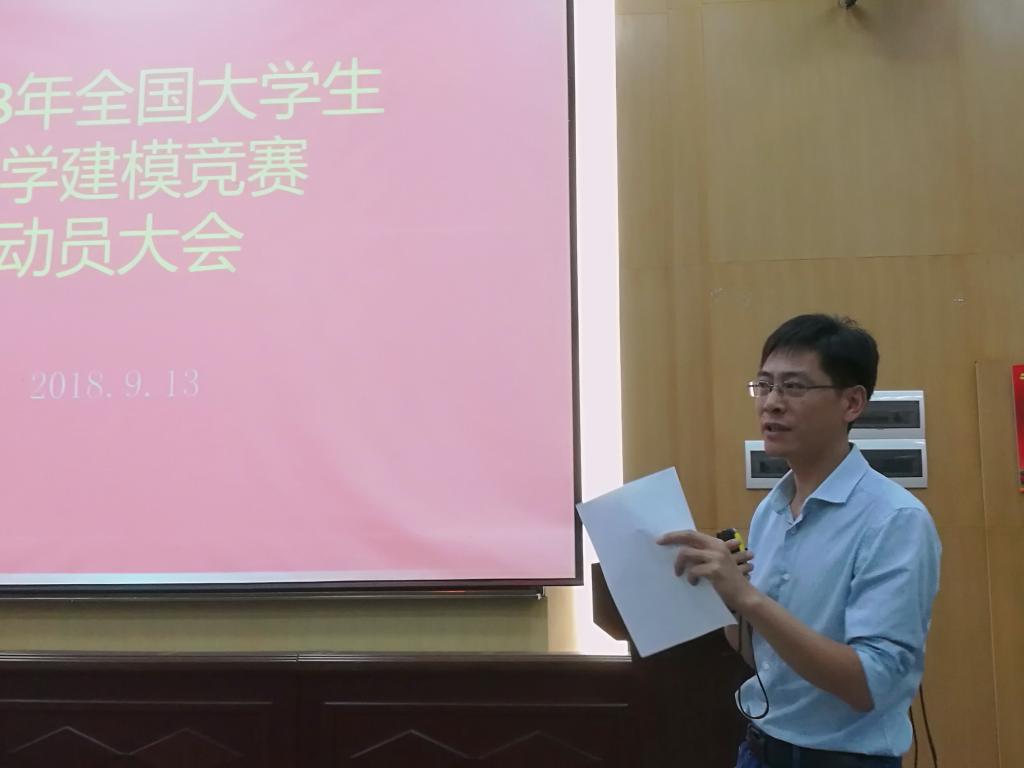 2018年9月13日下午,在教三楼109教室举行了2018年全国大学生数学建模竞赛的动员会。教务处副处长吕占峰以及信工学院、自动化学院、计算机学院等部分参赛学生所在的分管领导应邀出席数理学院院长刘安平、院党委书记吴太山以及全体指导老师参加会议。仪式由数理学院副院长张光勇教授主持。