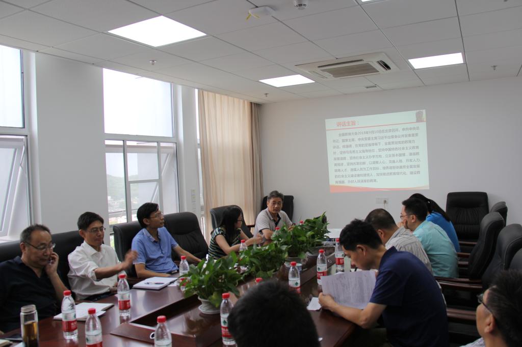 2018年9月20日下午,数理学院在教学综合楼A1515会议室举行院党委理论中心组学习(扩大)会。会议由院党委书记吴太山主持,院党政班子全体成员、各三级单位行政主要负责人参加。