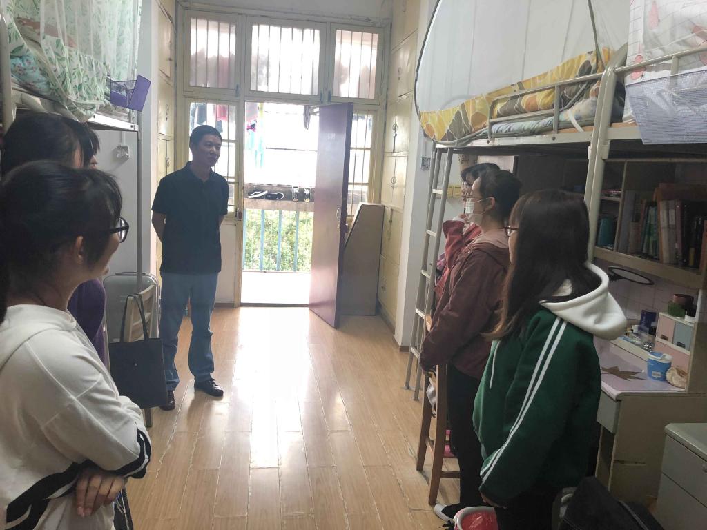 10月18日下午,前一天才到数理学院上任的院党委副书记徐超,在辅导员托乎尼牙孜的陪同下,赴少数民族预科班宿舍看望学生们。