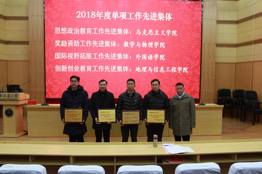 2019年2月22日上午,在学校召开的2019年学生工作布置大会暨2018年度学生工作表彰大会中,我院喜获“2018年度奖励资助工作先进集体”荣誉称号。