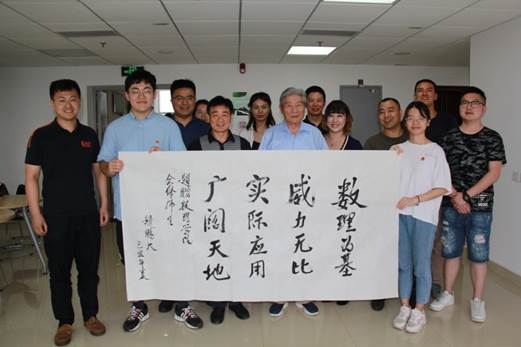 赵院士还为数理学工组题写了“知数达理”这一数理学院学生工作的理念,为院学生会会旗题写了“云鼎国际4118登录学生会”,并与全体人员合影留念。