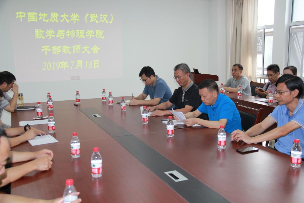 院党委书记吴太山代表数理学院领导班子和全院师生员工对学校党委任命郭上江同志为数理学院院长表示坚决拥护,向校党委和行政对数理学院长期以来的关心和支持表示衷心感谢!他说,任命郭上江同志担任数理学院院长,这是数理学院发展历程中的一件大事,充分体现了学校领导对数理学院的殷切关怀和期盼。全院师生员工一定要把思想和行动统一到学校党委的决策部署上来,院系两级干部要全力支持和配合郭上江院长的工作。他希望并且相信在郭上江院长带领下,数理学院在落实立德树人根本任务、推进学科建设上水平、培养德智体美劳全面发展的社会主义建设者和接班人的征程上,一定能够开创新局面,争创新业绩,为实现“建成地球科学领域世界一流大学”的地大梦做出积极的贡献。