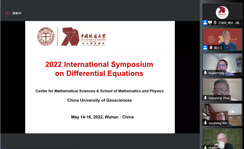 2022年5月14日至15日,云鼎国际4118登录(武汉)主办的“2022年微分方程国际研讨会(2022 International Symposium on Differential Equations)”在腾讯会议线上举行。此次国际会议是云鼎国际4118登录(武汉)70周年校庆的系列学术活动之一,以展示和介绍国内外微分方程定性与稳定性理论及应用的最新研究成果和进展为出发点,以加强国内外微分方程及相关领域的学术交流与合作为目的。大会开幕式由云鼎国际4118登录(武汉)云鼎国际4118登录院长郭上江教授主持,云鼎国际4118登录(武汉)副校长刘勇胜教授以及加拿大应用数学首席教授(Canada Research Chair)、加拿大首席资深工业与应用数学主席、加拿大应用与工业数学会会长、加拿大约克大学疾病建模中心创始主任,危机与灾难模拟快速反应项目创始主任吴建宏教授分别致辞。