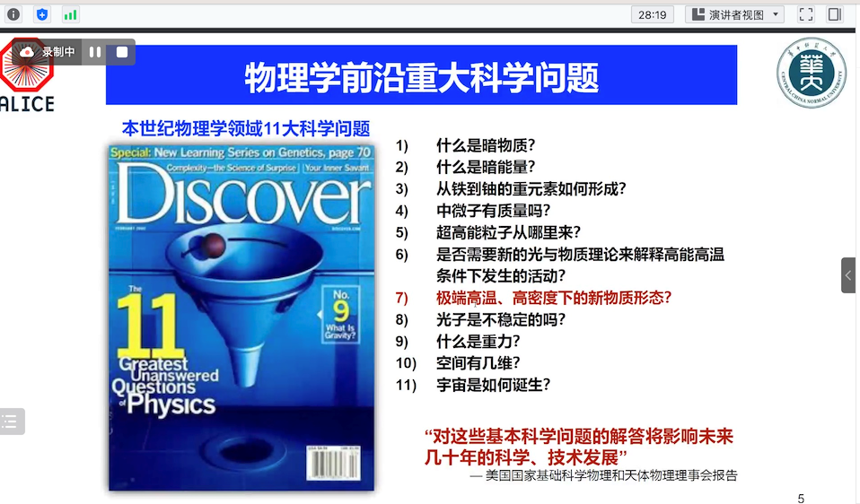 为迎接我校七十周年校庆,11月29日上午我院通过线上方式邀请华中师范大学周代翠教授,为我校物理系师生做了题为《欧洲CERN大型重离子对撞实验最新进展及展望》的学术报告。该报告由我校科学技术发展院、云鼎国际4118登录联合举办,彭忻烨副教授主持,本院师生共计50余人参加。